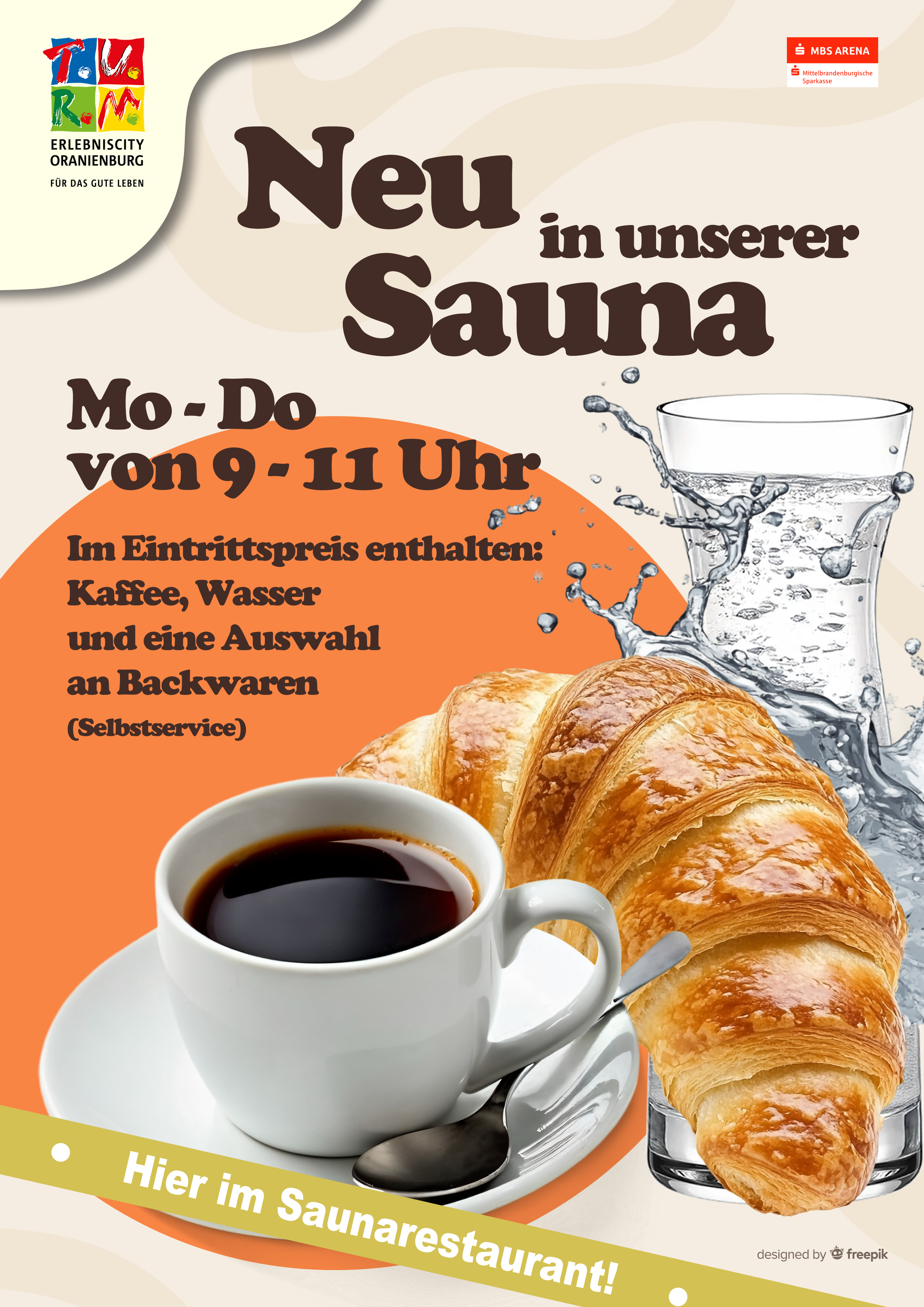 Ab sofort erwartet unsere Gäste ein genussvoller Start in den Tag! Von Montag bis Donnerstag, jeweils von 9.00 -11.00 Uhr, gibt es kostenfrei eine Tasse Kaffee, Wasser & eine Auswahl an Backwaren - alles im Eintrittspreis inklusive.