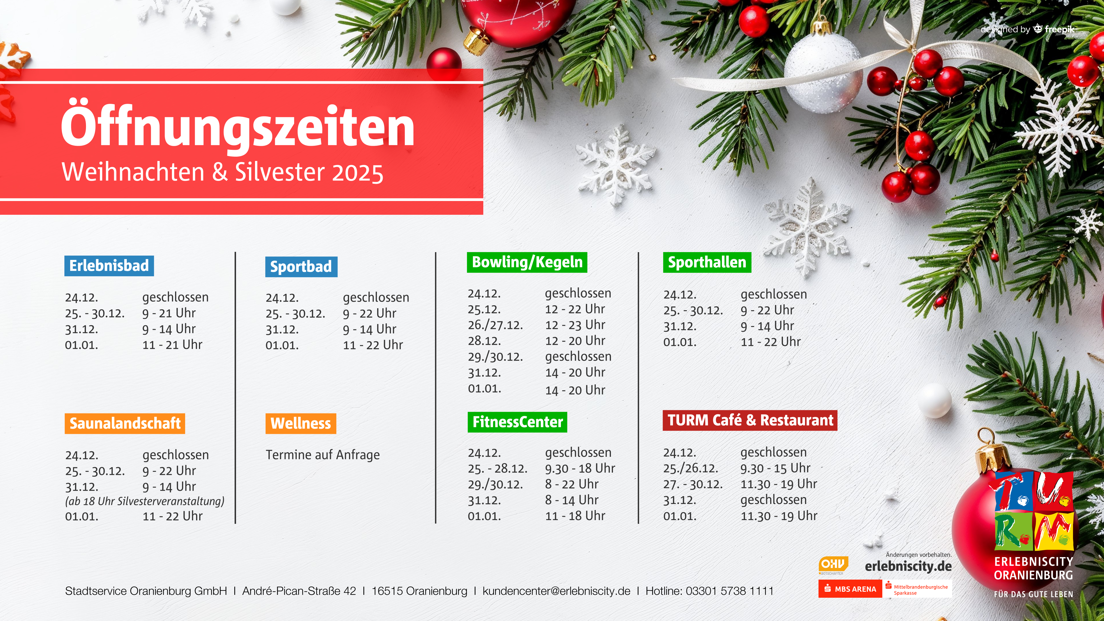 16.00 - 22.00 Uhr* Mittwoch & Donnerstag *14.00 - 22.00 Uhr Ferien/Feiertage Brandenburg | 14.00 - 23.00 Uhr Freitag |