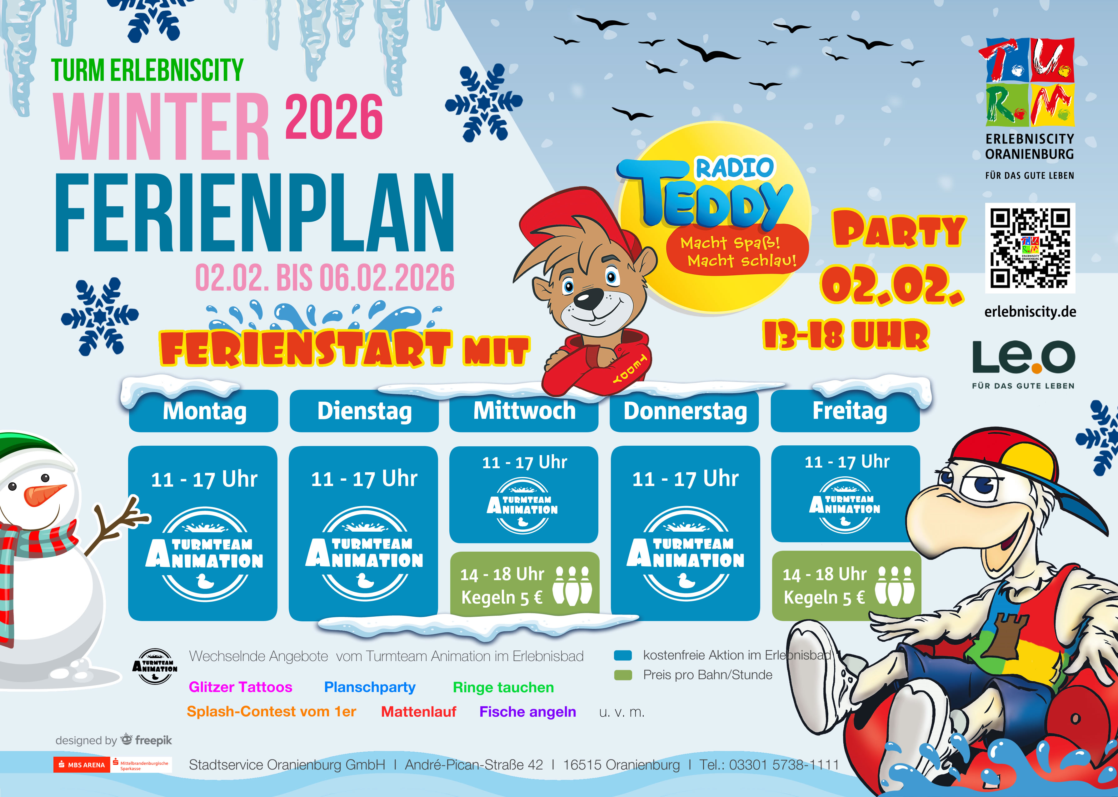 Vom 02. Februar bis 06. Februar dürft ihr euch auf nassen Ferienspaß freuen. Wir starten mit der großen Radio-Teddy-Party gleich am Montag (02.02.2026, 13.00 -18.00 Uhr).